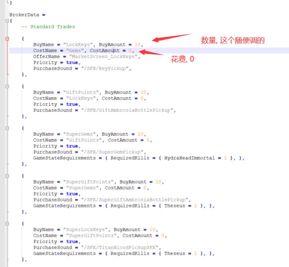 在SteamLibrary\steamapps\common\Hades\Content\Scripts这个文件位置,有一个StoreData.lua文件,找不到的直接全局搜索,首先复制一遍,然后在里面BrokerData这项目里将costAmount的值改为0即可。